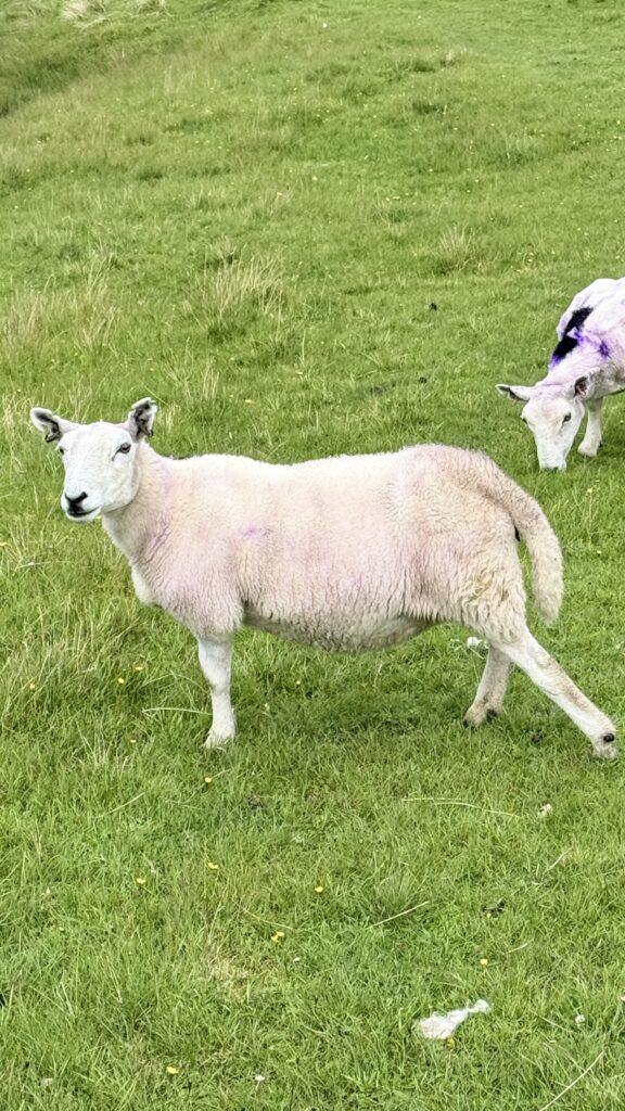 For one of our tours, we hiked for fiver hours to arrive at a gorgeous beach. This was the last day of questionable weather and the winds buffeted us the entire way. Arriving at the beach, we were virtually alone, but there were a few intrepid Scotts willing to brave the cold waters. Average water temperature was around 12c. Have I mentioned sheep? They are everywhere and provide both wool and delicious chops. They don’t really care about people and make driving fun. You never know when taking a corner if you will come face-to-face with one.