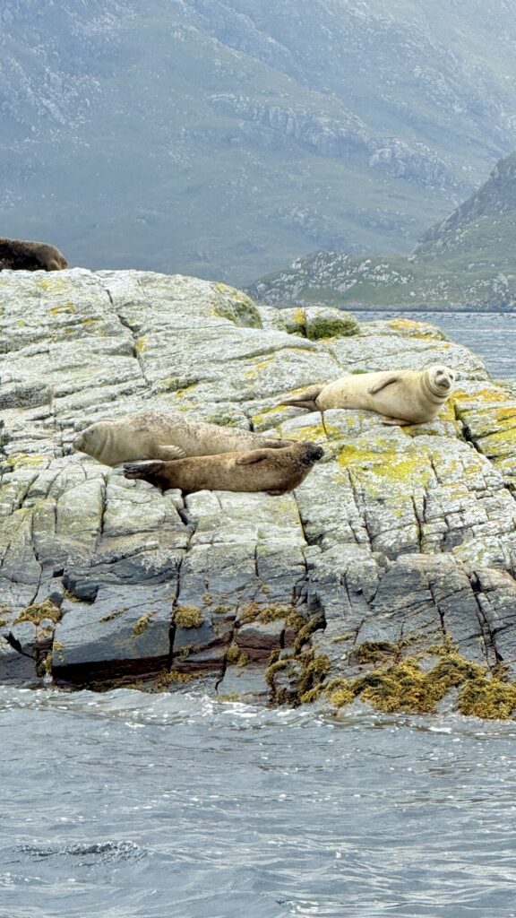Remote, barren and desolate all come to mind when driving to Kylesku. I read a statistic that almost 90% of Scotland has little to no population and I can believe it. To reach Kylesku, you cross huge expanses of the highlands, where there is nothing and no one to see. Just lots of fields, rocks, stones, lochs and mountains. The early highlanders were of Norwegian stock, and it is easy to see why they liked Scotland. In Kylesku we focused on hiking, beaches and sea life.