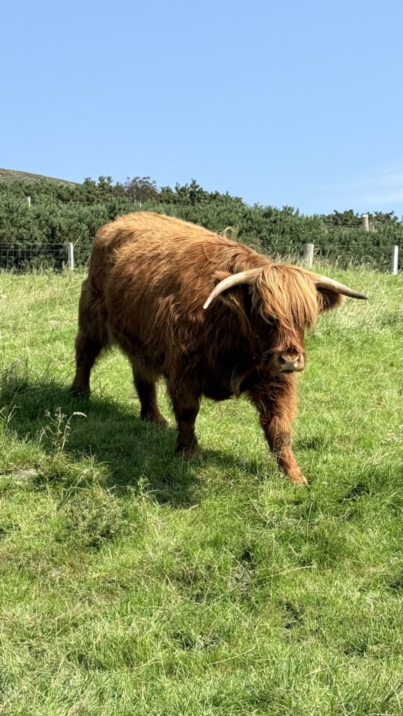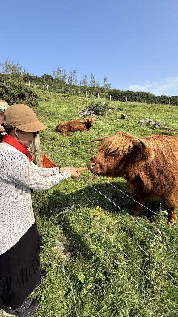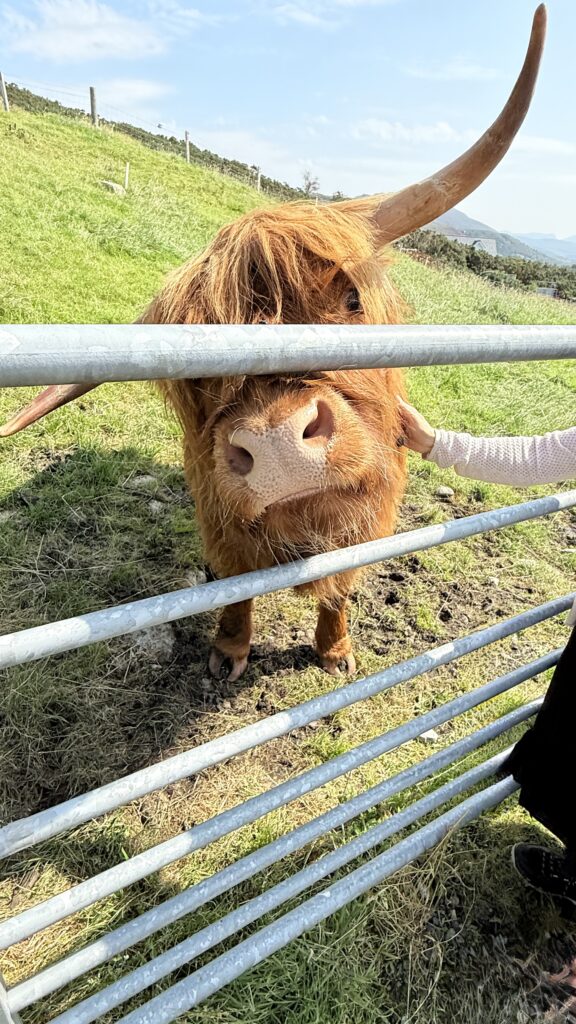 We slowed down and enjoyed exploring ruins and bonding with the semi-wild animals. An intentional feature of this trip is to take our time and build in down periods. The opportunity to play with the Scottish cows was too good to pass up. So gentle and they absolutely love to be combed. Eunjae had a great time combing-out the long hair, and the animal really preened and leaned into the experience.
