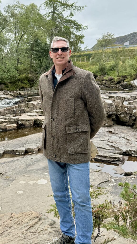 During this trip we visited multiple weaving sheds. Scottish herringbone tweed is so distinctive and classic. When I purchased the jacket, I was informed that there was “Good News and Bad News.”. The “Good News Was that the Jacket is original Harris Tweed, and the Bad News was that I would have to Bequeath the Jacket because it would Outlast Me.”. Not sure how I feel about this, but I suppose it is the price to pay to appear stylish.