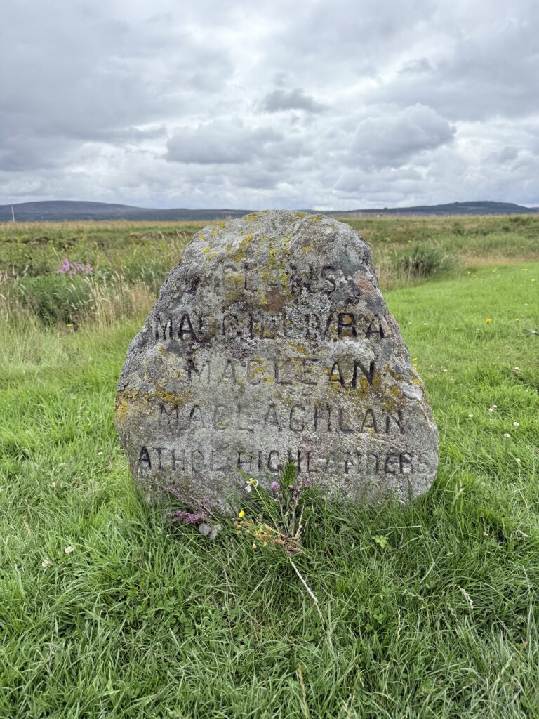 First stop Colloden Battlefield to glimpse the history that inspired Outlander. The battlefield is wonderful to roam and is crisscrossed with walking trails. Wildflowers bloom everywhere and clan marks dot the landscape. Of course, no trip would be complete without paying our respects to the “Clan Frazer” headstone.
